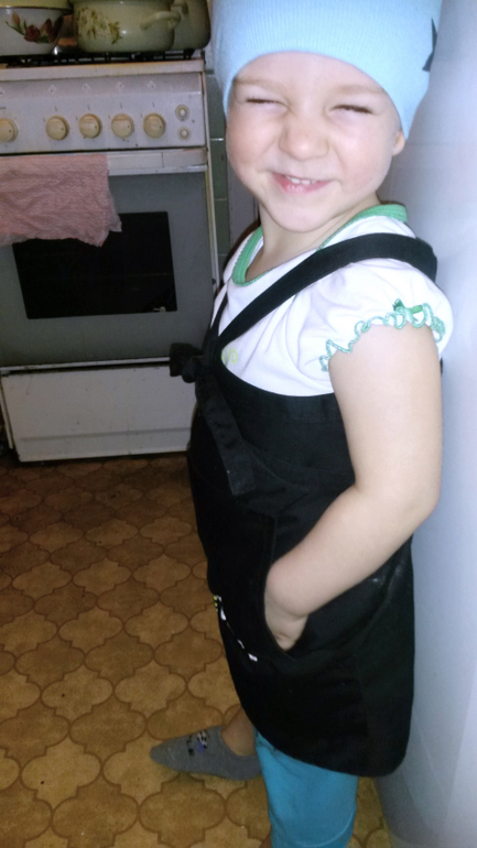 Мамин помощник на кухне)) одеваю его в фартук))) и давай помогать,все что надо принесет и подаст) а потом и поест) обожает блинчики и драники) а кроме того гречку,уху,салатики(винегрет,зеленые салаты),супы со шпинатом и стручковой фасолью, сырный суп, запеканки) куриный суп и ворщ) а также рисовую кашу с сухофруктами и тыквой) Уважает творожок и ряженку) яблоки,груши)ягоды)