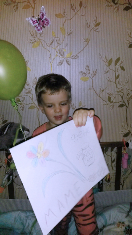 Букет на день рождение))) и рисунок от сына) Маме с днем варенья и цветик-семицветик)