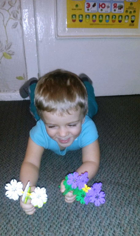 обожаем вот этот конструктор) цветочки соединяясь образуют разные фигуры)