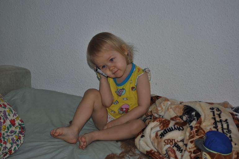 Раньше Машуля звонила по калькулятору в телефоне)) Это меня веселило)) До того момента, как она стала звонить по настоящим цифрам или контактам в телефоне... Слава Богу, что она пока звонит только свекрови))) И пару раз моей маме набирала) Вот такая деловая за разговором: