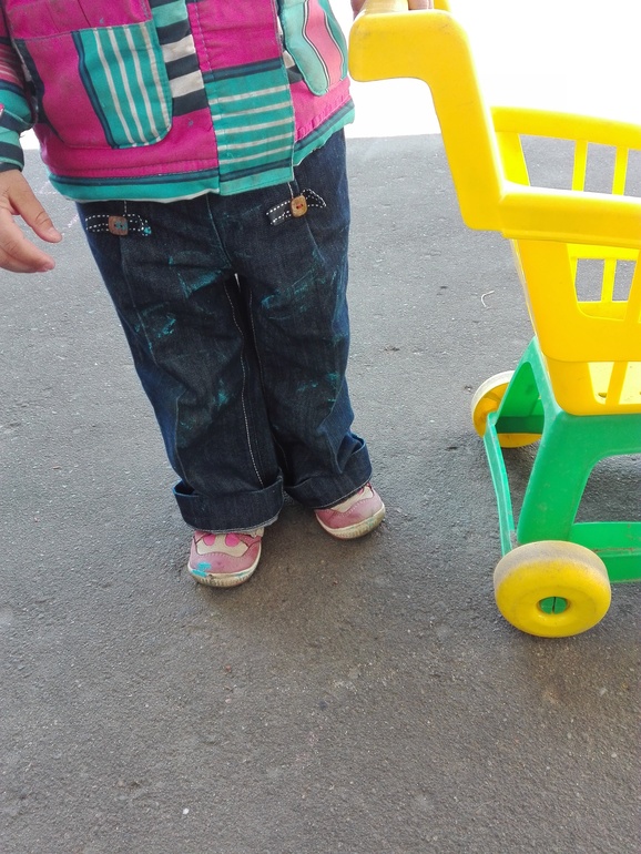Ps: спустя почти 5часов после измазания, краска оттерлась обычным ацетоном. Отдельная хвала качеству одежды next- краска с джинс не слезла, хотя этим джинсам лет больше,чем Уле, а ацетона я налила много