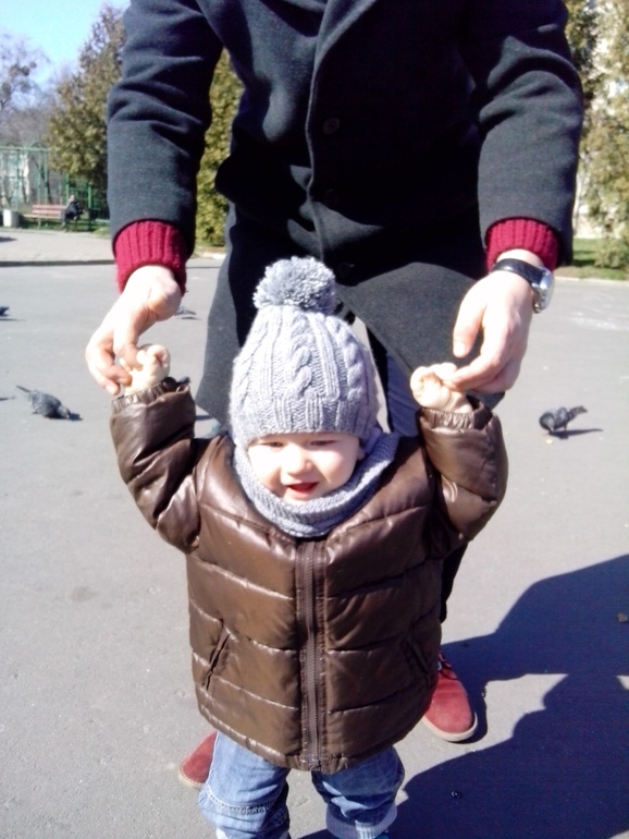 Вот наш 11 месяц позади.Мы уже так повзрослели. В 10 и 5 дней проходили весь дом поперек,на улице только с машинкой толкателем ходил.А в 10 с половиной мес ходил уже хорошо даже на улице.Но так забавно убегает от меня,когда упадет на попочку,на четвереньках убегает и хохочет во весь ротик,что бы я его доганяла-)))Такой веселунчик.