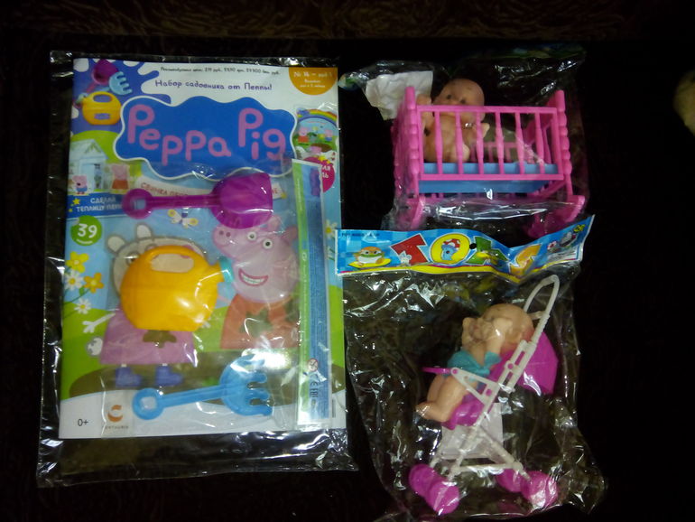 В итоге - купили Пеппу! Пошли к ларьку за клубникой - а там еще один книжный ларек с игрушками) В итоге, пока я покупала клубнику, доча насмотрела еще себе подарки! А я такая тряпка в этом деле - если недорого и знаю, что будет играть - обязательно куплю! В итоге - купили пупса на коляске и пупса в кроватке (хорошо, она еще пупса в ванне не увидела, он высоко стоял