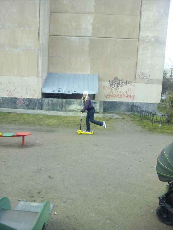 Вчера пошли с папой гулять) И я его опробовала. Знаете, это мой первый опыт на самокате, раньше никогда не каталась! И оказывается - это такой кайф!!!!!!!!!!!!!!!!!!!!!