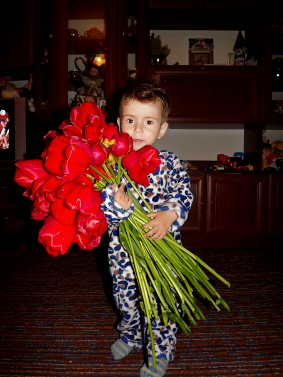 как я его обожаю, очень любит мои любимые цветы!!!