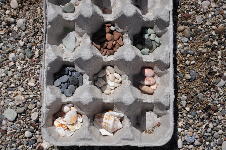 Растем и развиваемсяПрирода - универсальный учитель! Камешки на берегу моря - отличный вариант сортировщика: ищем маленькие осколки ракушек, обкатанные стеклышки, черные камешки, зеленые, розовые, маленькие палочки, шишечки - вариантов множество! Подбираем камушки, подходящие по размеру, чтобы пролезли в бутылочное горлышко, которое превращается то в пасть дракона, то в ротик маленького ежика.