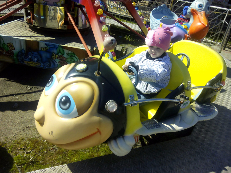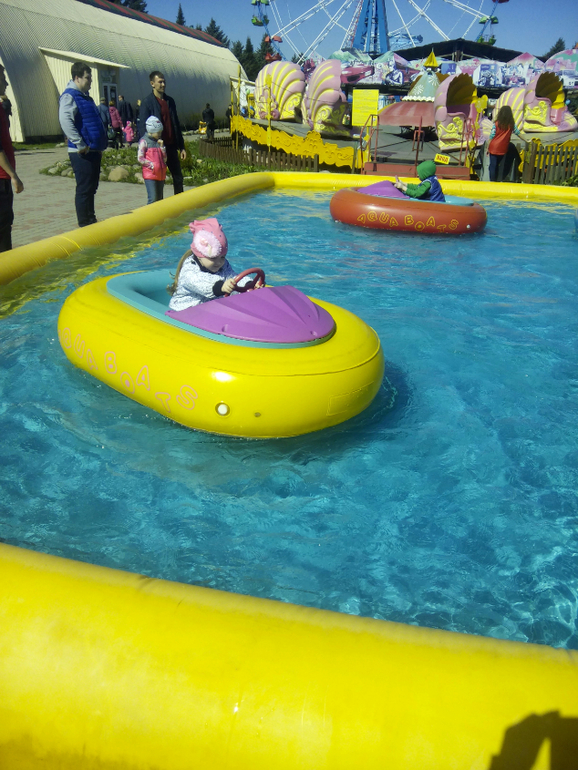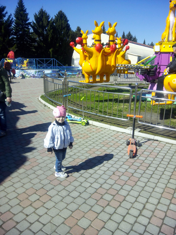 Конечно же, сначала с дочей - на аттракционы) Сначала качелька-цепочка! Потом 2р. - все те же самолетики ( здесь ей захотелось в пчелке), дошли до надувного батута - там уборка - 10 минут подождали - ушли! Наткнулись на Карусель с лошадками (Венская или Венецская...блин...забыла!)...Кристи катаясь на ней - заприметила - Лабиринт! в общем рванули туда. Заплатила, раздела дочу и на час туда сдала) Минут через 20 подхожу к выходу, сидит грустная...я чего случилось, домой пошли??!! Молча оделись и ушли, так и не сказала, что там случилось - деток было много! и более взрослых, может кто ударил?? ну фиг знает))