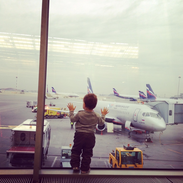 Месяц назад мы удачно пережили два почти трехчасовых перелета и пересадку 2,5ч. Все прошло хорошо, я была готова к худшему. В самолете Рома вел себя сносно, оба перелета поспал минут по 30-40. На всякий случай взяла с собой планшет набитый Машей и пеппой. Пригодилось. В аэропорту ребенка вообще никак развлекать не нужно. Достаточно прикрепить к окну, откуда видно самолеты.