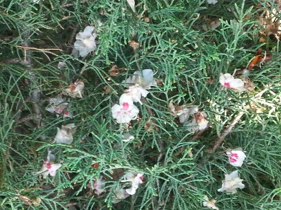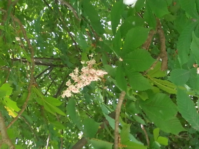 Какой-то куст, типа туи, весь усыпанный каштановым цветом.