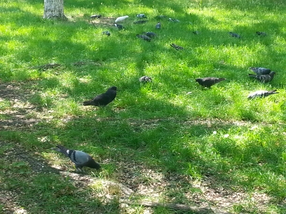 Голуби, куда же без них. Наглые, людей почти не боятся