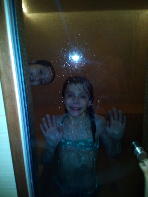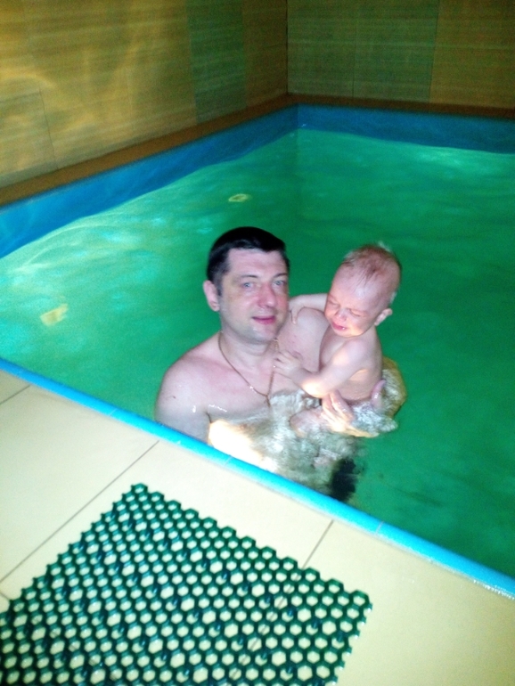 8 мая попали мы в сауну.Юля испугалась,а вот Богданчику понравилось,оно и понятно маленький еще, не соображает.Аню невозможно было вытащить из бассейна,в итоге в конце дня глаза были безумно красными.А Юля просидела в предбаннике,мерзла(щас насморк у нее).