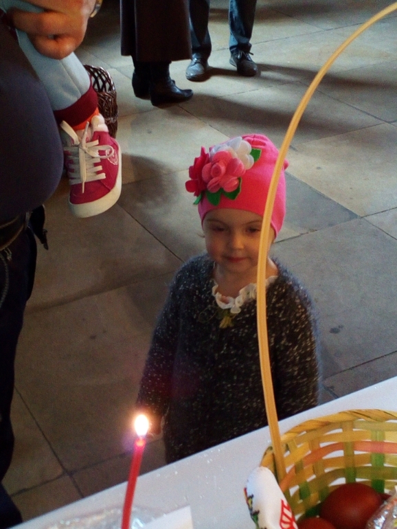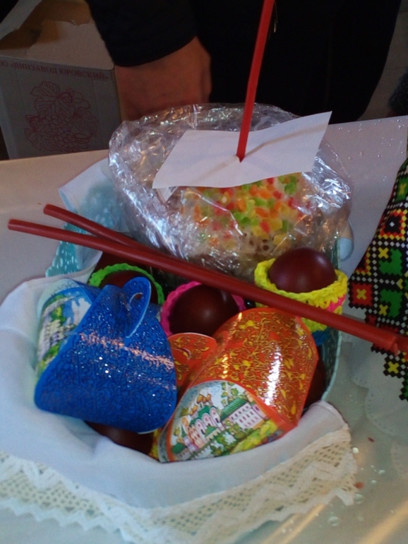 Сначала была у нас пасха.Подготовки особенной не было,в чистый четверг отвела на 3 часа Юлю в садик прибежала с Богданом домой,и пока он спал в коляске намыла окно(а оно состоит из 3 частей)сняла шторы постирать.После забрали Юлю погуляли,пришли,накормила всех,пошла мыть другое окно.И все это в перемешку с готовкой,стиркой,глажкой и подготовкой к ГИА.Вечером покрасила яйца в шелухе,ничего не выдумывала,на некоторые термонаклейки одела и все.В субботу пошли посвятили в церкви,Юля убегала,Аня за ней бегала по всему храму,короче то еще удовольствие.Ночью без старшей пошли на Крестный ход.Муж с Богданом стоял в сторонке,а с Юлей мы пошли вокруг храма,она была впечатлена звоном колоколов!Просила еще!