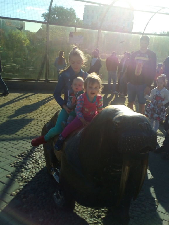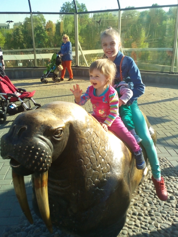 Также в эти выходные съездили в зоопарк с подругой,без мужа.От дома троллейбус идет прямой.Я очень люблю зоопарк,но сильнее его люблю в будние дни с утра.Поэтому кайфанула но не по полной. Особенно в визжащей-дребежащей Юлей, плюс постоянно пыталась пролезть за ограждения,и засовывала пальцы куда ни надо.Но в целом я рада ,что не сидим на месте. Кстати Юля увидела тут всех парнокопытных,и она их всех называла Кавова мууу Я говорю это не корова,это козел.Она кАзель!Громко,четко и с выражением,смеялись все.На кису говорила через букву П.Тоже народ валялся,я говорю Юлечка это киса,она да -да п....иса .Так что могуч и велик русский язык,особенно с малышами.