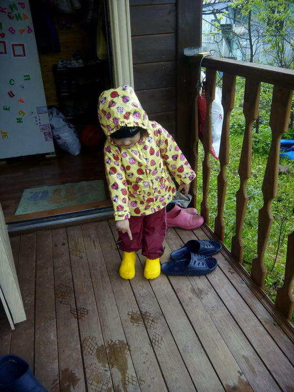Класс!Маленькое солнышко!Наряд просто супер у вас на дождливую погоду!!!