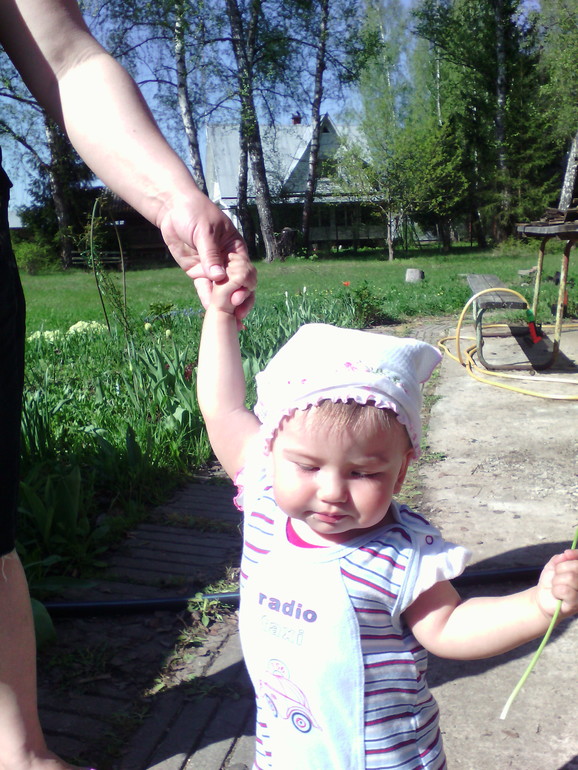 Вес 9500, рост примерно 72-73 см. В майские мы наконец пошли!!! Чему я безмерно рада)) очень этого ждала. Не по шагу, а прям по пол комнаты. Разовые шаги у нас давно, но только 1-2 шага и на попу плюхалась. Сейчас ходит по квартире, а я балдею от нее. Слов нету почти, кроме как и было, кых - киса, упа-упал, бах и изредка мама, папа, баба. Любит обниматься, целоваться. Научилась чмокать))) так это смешно выглядит