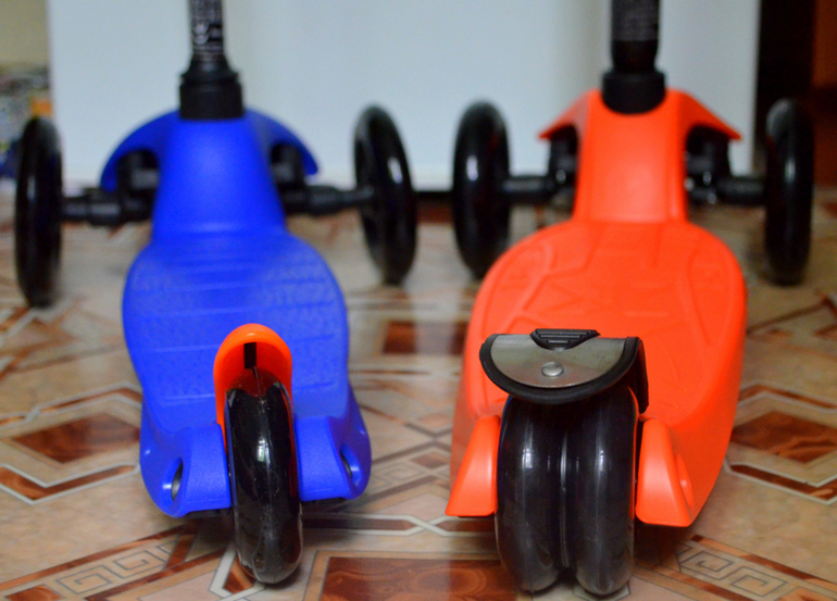 *У Micro Maxi заднее колесо сдвоенное, что делает самокат более устойчивым, но менее маневренным по сравнению с Micro Mini.