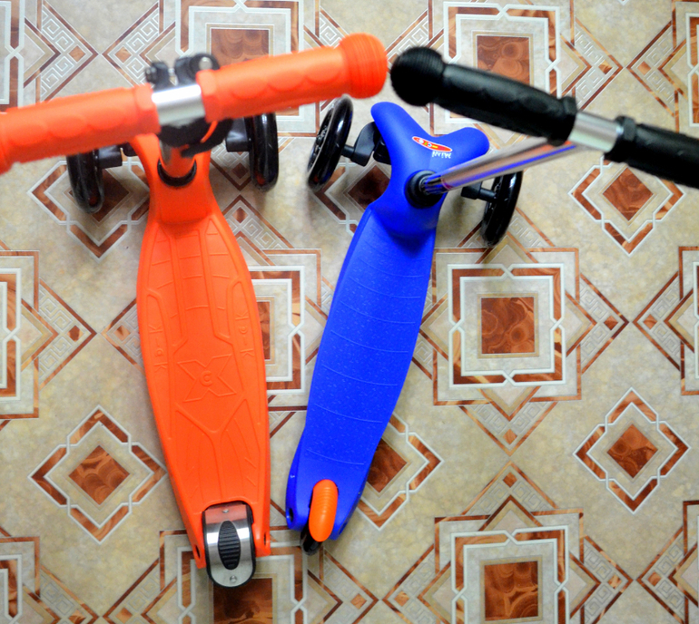 *У Micro Mini руль очень податливый, чтобы ребенку, с его небольшой массой тела было легко поворачивать на самокате. У Micro Maxi поворот руля происходит при бОльшем приложении силы. Тут кроется один из нюансов.