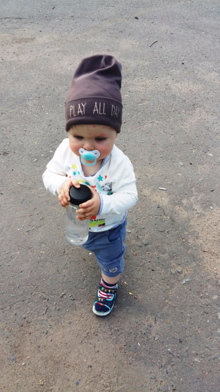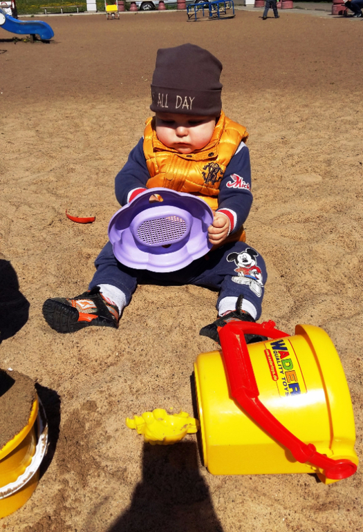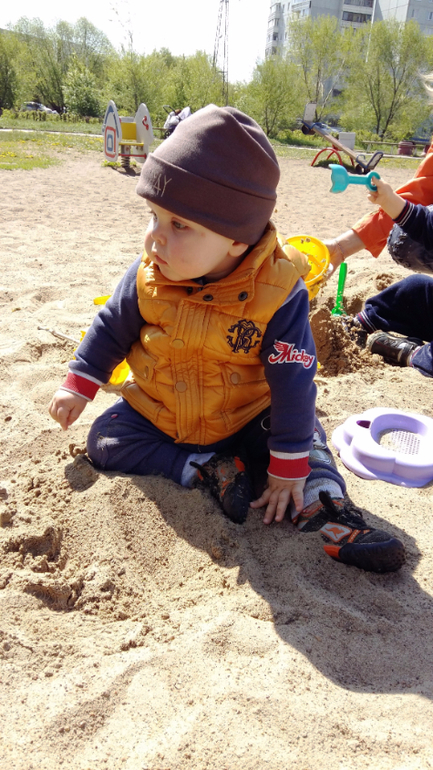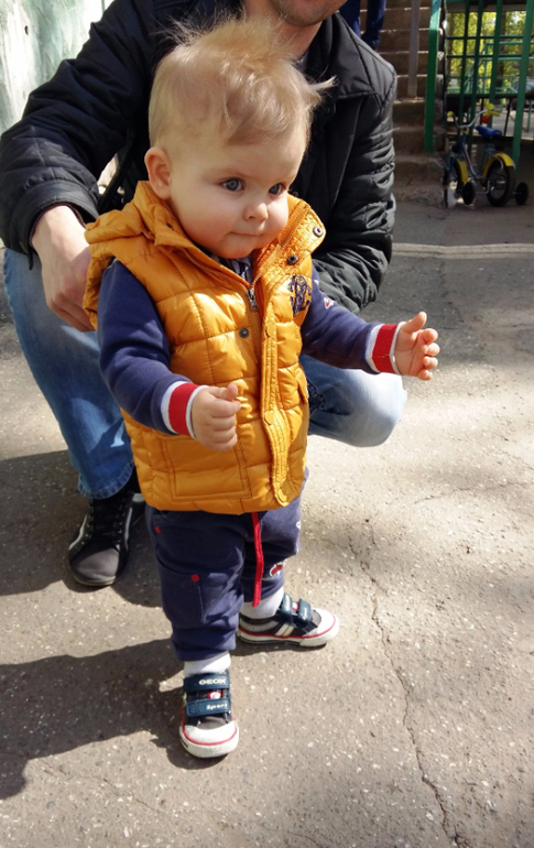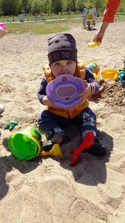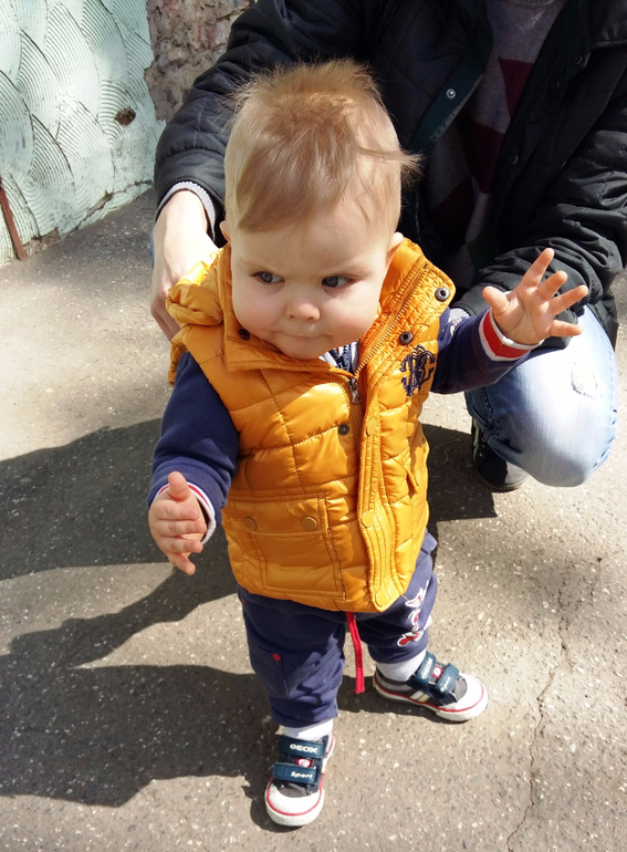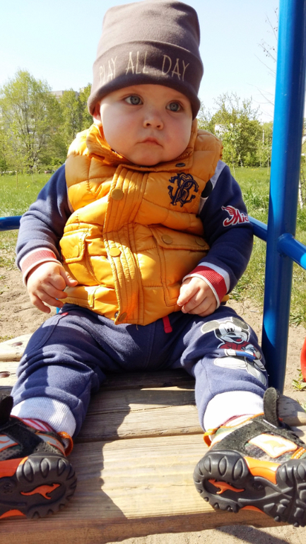 Умелки: Ходит уверенно, играет в песочнице с игрушками и детками. Обожает качели и горки. Наконец-то научился играть в ладушки и осознанно махать пока-пока и привет.