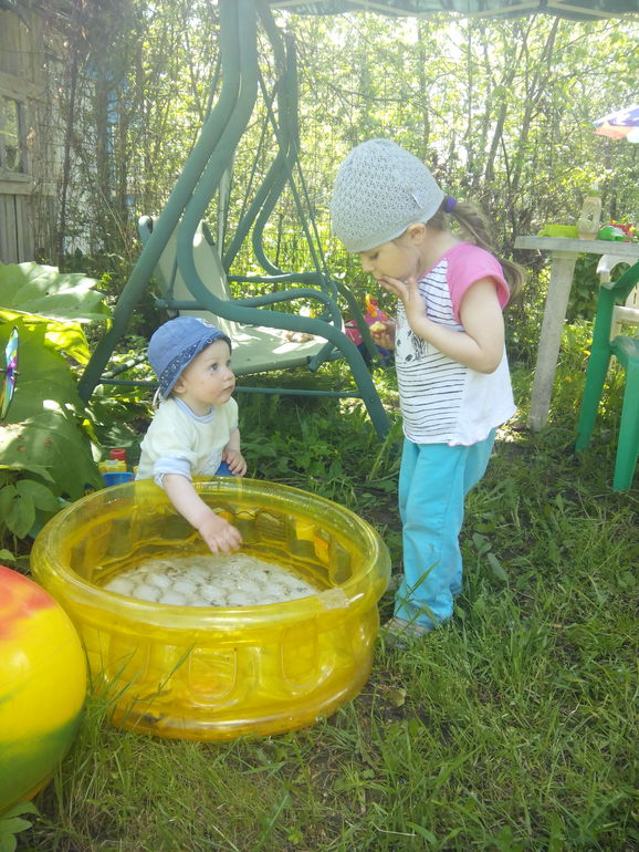 Почти все фотки, у единственного пока развлечения - бассейна. Папа в эти выходные обещал повесить качели! С песочницей пока облом, на зиму закрыли её, и там поселились муравьи, и песка почти не осталось) Надо выводить их, переносить песочницу и "добывать" туда песок! В общем дел ещё много...