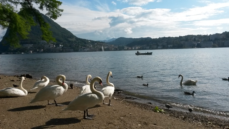 - 2 июня - неспеша позавтракали аут, выехали, приехали в Лекко (NH Lecco), кинули чемоданы и в качестве сюрприза моей маме поехали в Швейцарию на озеро Лугано погулять :) Пока ехали, шел дождь, но потом тучи чудесным образом разошлись, выглянуло солнышко, и мы чудесно погуляли. Мама осталась в полном восторге, а Крис впервые в жизни близко увидел лебедей :)
