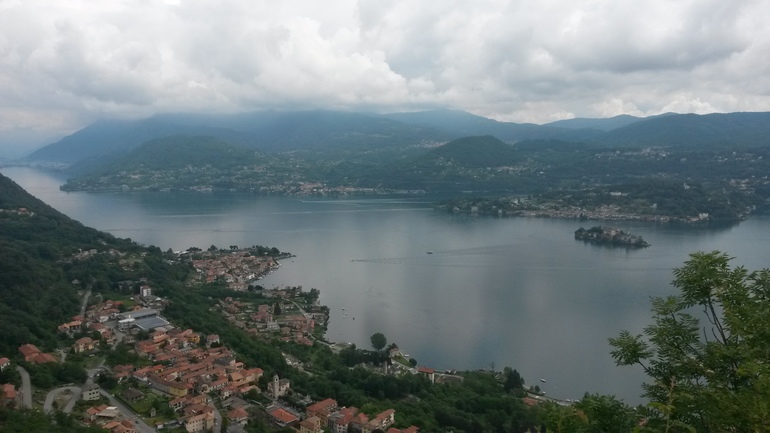 - 3 июня - NH Lecco неприятно удивил тем, что свежевыжатый сок у них не входит в стандартный завтрак, чем потерял пункты в наших глазах... Дозаказали для Криса и после завтрака поехали на озеро д'Орта. Рядом с озерам живет дядя мужа, которого мой муж обожает. Захватили и его и все вместе поехали сначала к сантуарио на скале, оттуда полюбовались головокружительной панарамой озера и острова св. Джулио.