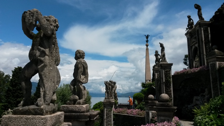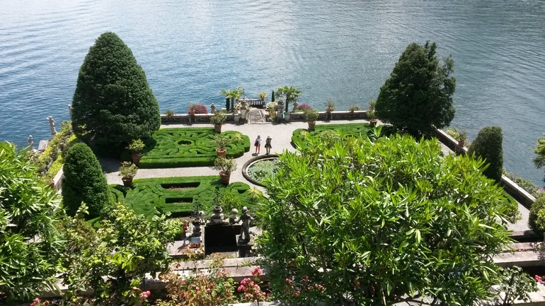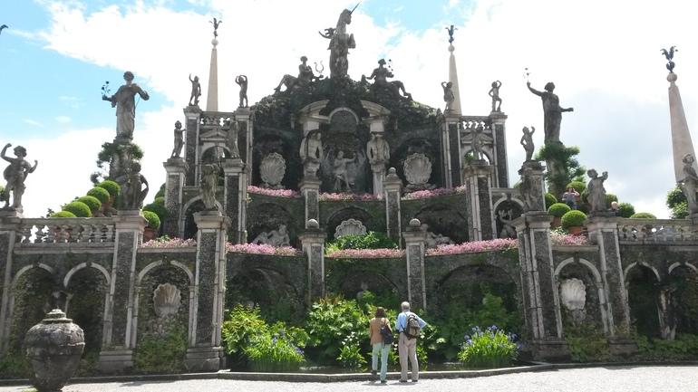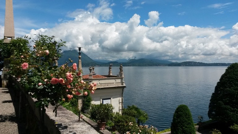- 4 июня - проснулись пораньше и поехали на озеро Маджоре, чтобы оттуда из Бавено на лодочке посетить два острова: Isola Bella и Isola dei Pescatori. На острове Белла находится дворец Борромео - влиятельной семьи, из которой произошло много знаменитых людей, а том числе св. Карло Борромео. Дворец интересен своим интерьером, который сохранился с 17-18 веков почти неизменным (войны его не тронули), картинной галереей, гротами и конечно же великолепным садом с розами и белыми павлинами. Все это настолько красиво, что остров можно было бы назвать не Белла, а Беллиссима!