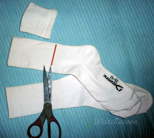 1. Берём носки взрослые спортивные высокие. И варварски отрезаем верхнюю резинку, сантиметров 12.