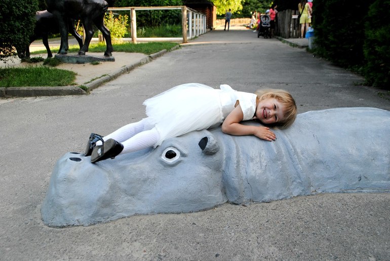 .Она мечтала о шариках,подружках,подарочках.Ну вот он и пришел))С утра проснулась вся в шариках,с кроватки вылезать не хотела,Даньку не подпускала.На улице погода радовала,поэтому ,Полечка ,одевшись,пошла на улицу.Там ее ждали друзья соседские с подарком.Приняв подарочек,они пошли рисовать фигурки из гипса.Пропала моя бусинка на 2 часа))Пришла вся испачканная,но ей можна-)))Потом приехала к нам в гости крестная,подарила дочке кухню.Но Поля ,пока, без особой радости играет.Потом был дневной сон,после которого мы поехали с ее подружкой в зоопарк.Ну зоопарк на Полю всегда магически действовал,ооочень любит зверей.А в этот день,она ко всем подходила и говорила"Привіт зебра.З Днем народження мене"И так ко всем зверям-))).И Данька с огромными глазами смотрел на всех зверей и что-то говорил на своем языке.А потом домой.Еще один друг пришел поздравить.Позадували свечечки,покушали торт и спать.