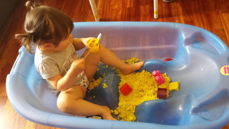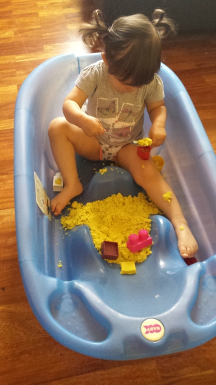 Кстати пробовала на днях сделать неньютоновую жидкость ))) мне очень понравилось..а вот дочка не оценила пока..даже руки не хотела опускать и пачкать))) поэтому она ее просто сразу вылила в ванную)))) так что до такого развлечения нам надо еще дорасти)) а вот песочек моя красавица оценила)) так рада за нее)) а то тут песочниц нет...и дочурка песок видела до сегодняшнего дня только один раз на море)) а теперь у нас своя персональная песочница))))
