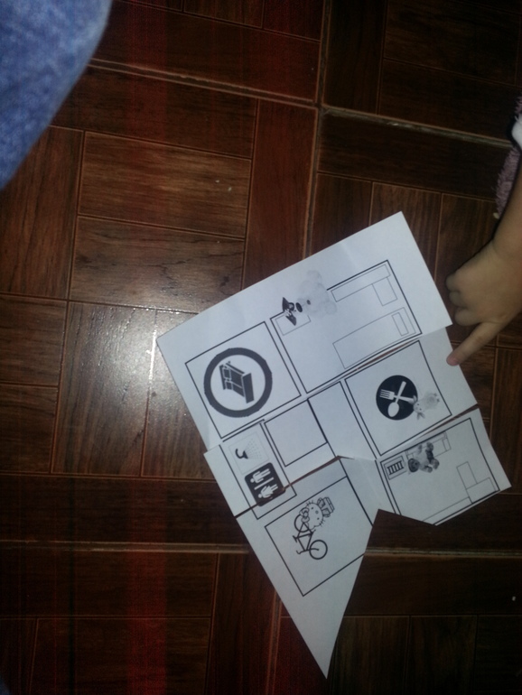 Делаем в фотошоп карту квартиры. В разных комнатах расставляем подсказки-игрушки. Их же изображаем на карте. Под каждой подсказкой следующий кусочек "карты".