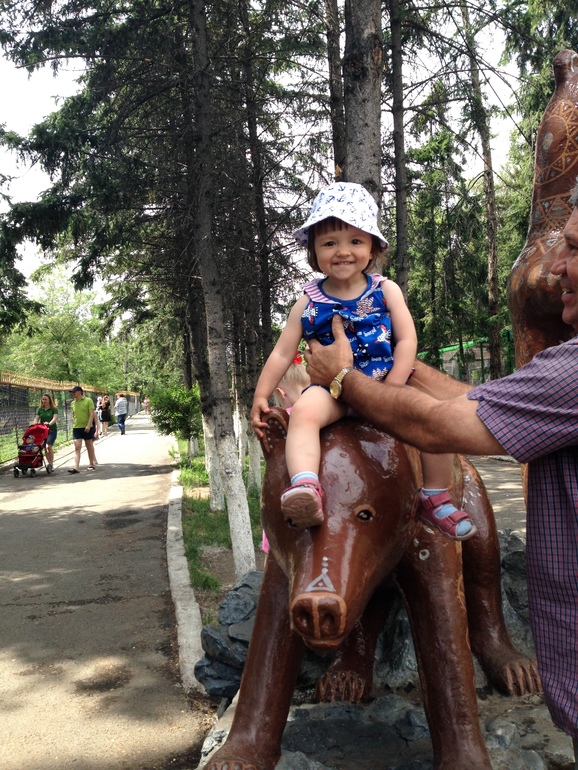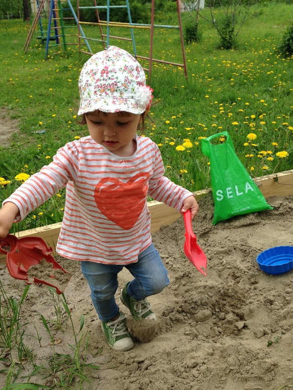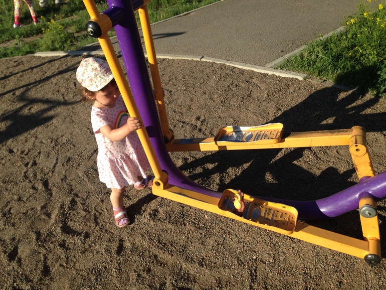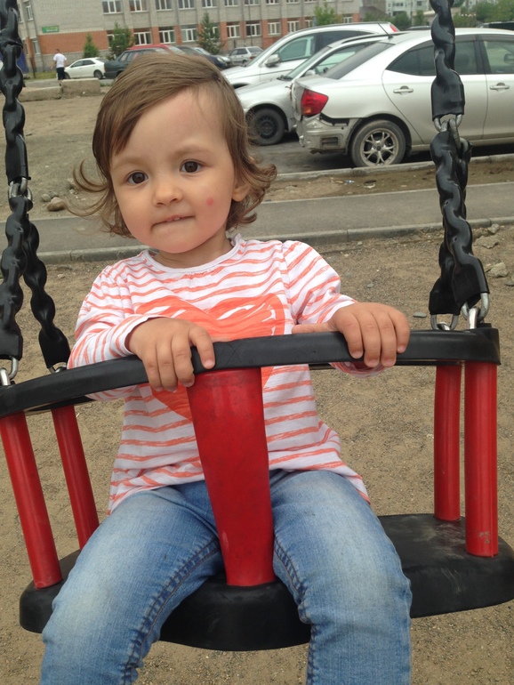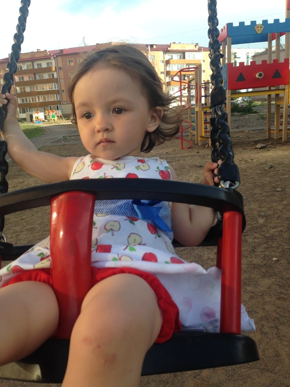И, кстати, к плюсам месяца можно отнести говорение, болтать стала намного больше, при этом понятного и нам и ей, и кстати такой толчок в речи происходит когда мы приезжаем погостить к моим родителям,живут они в коттедже и тут тебе курочки у соседа за забором и собака в ограде,и кот в доме. А родители ещё и ни на шутку заморочились,устроили мини площадку в саду,бассейн,качели,горка,песочница,короче у Алисы впечатлений тьма,от которых её распирает и она болтает без умолку)