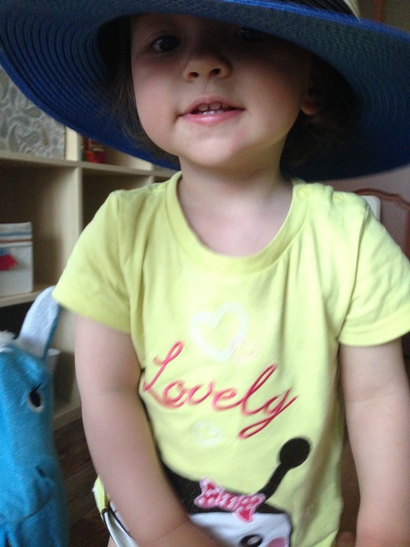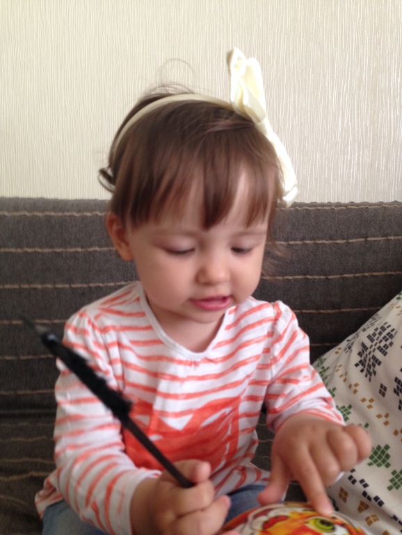 С самоодеванием немного откат, точнее как Алиса раньше хорошо снимала/одевала верхнюю одежду, ну и носки,колготки натягивала, а сейчас верх одежды нет, а вот штанишки и шорты она вертит,вертит в руках, пытается ноги засунуть, но ей это быстро надоедает и она оставляет это занятие. Зато футболки и платья сама может на голову натянуть, точнее на шею, ну а руки я помогаю засунуть.