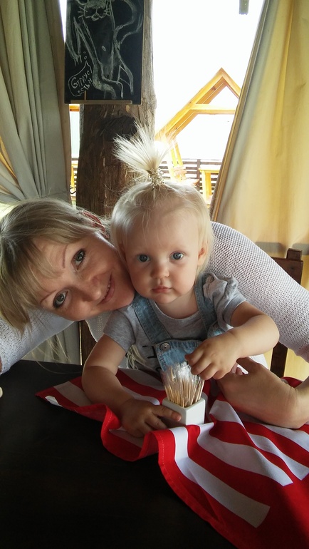 Привет всем... В принципе я не особенный писатель постов, а это вот прям захотелось... Итак пробыли мы чуть более месяца в Италии у бабушки и оченно я расстроилась улетая... Но селяви такова и делать нечего((( собрали все покупки и полетели...София очень изменилась за этот месяц..повзрослела что ли.. Уезжали мы умея только матюкаться невпопад...а приехали уже со знанием где применить матюк...вот например бежит по коридору, зацепится за тапочек и:"Бляя".. И дальше бежит)) ржу с нее.. У мамы начала повторять много слов и иммитировать звуки животных... Так мы говорим здрасте-дасти, пока пока,воздушный поцелуй, спасибо-кивает головой и что-то на своем произносит, зовет кота на итальянский манер...не как у нас киськись а причмокивая.. Собачка лает..котик мяукает..мышка пищит...уточка крякает такое.. Повторяет все мои телодвижения..вытираю допустим пыль выдирает тряпку и тоже всё трет, заметаю двор и ей нужен веник срочно.. Ест сама..но только если ей нравится еда..если нет то просто балуется..