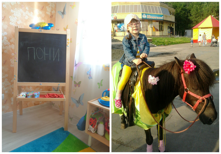 На выходных в парк ездили, и Диана захотела покататься на пони. Раньше она их только гладила осторожно, а садиться боялась. Пока катались, хозяйка нам рассказывала про пони, как их зовут, что они кушать любят. Диане понравилось:) Потом даже говорила, что ей пони Симона ночью приснилась. Это я после катания на Симоне слово сегодня выбрала:) Ура! Наша малышка учится читать! Очень рада ее успехам!