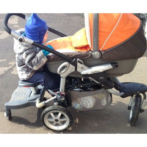 Мы пользуемся активно. У меня с сидением и ручкой для малыша. Очень удобно. Советую брать ту, где можно легко эту подставку отцепить, т,е. одним нажатием. Мне места хватает на ходьбу. Я цепляю на три разные коляски. У меня в дневнике есть фото