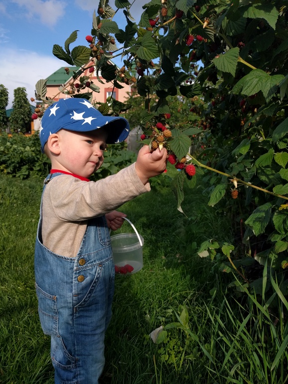 Ну и дача-дача. Лето располагает к хождению с голой попой, изучению окружающего мира и поеданию ягод прямо с кустов.