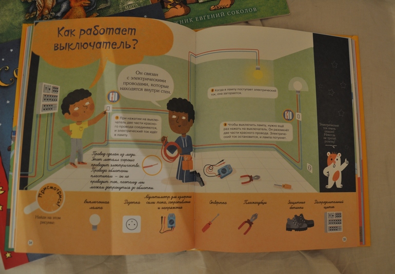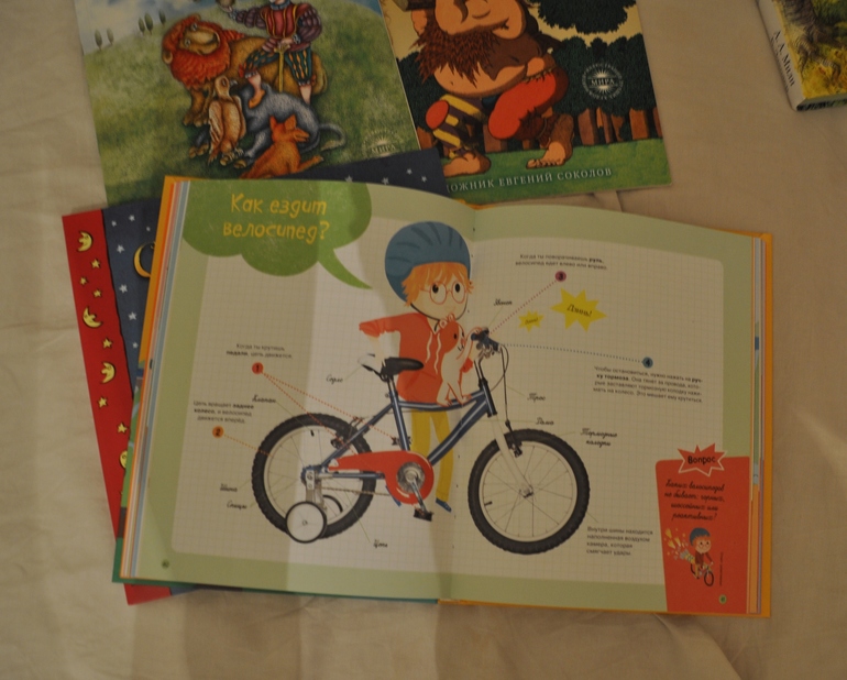 "Я знаю как это устроено" издательство Аванта - подарок моей двоюродной сестры, более содержательная и полезная книга чем Мишка. Это переводная французская энциклопедия (уже вторая в нашей библиотеке). Я сама узнала из нее много нового, книга разделена на разделы - Все за стол, Красота и чистота, Развлечения, В доме, В городе, Транспорт. На каждой страничке очень понятно и кратко с иллюстрацией рассказывается обо всем на свете - как пчелы делают мед, устройство автомобиля, куда девается мусор из баков (наша любимая тема) и т.д. Книга пригодится на долгое время, столько всяких открытий в ней, так что прям настоятельно рекомендую ее!