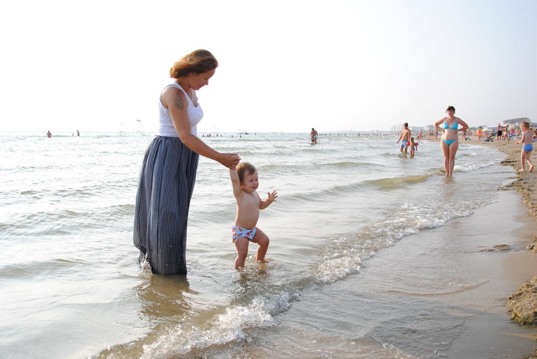 На море было все отлично, достаточно спокойная акклиматизация, радость от водички и игр в песке, крики начинались в процессе доставания Полины из воды - в ней дочь может сидеть до синевы просто. Хотя все встречные бабушки уверяли, что ребенок рыдает от холода