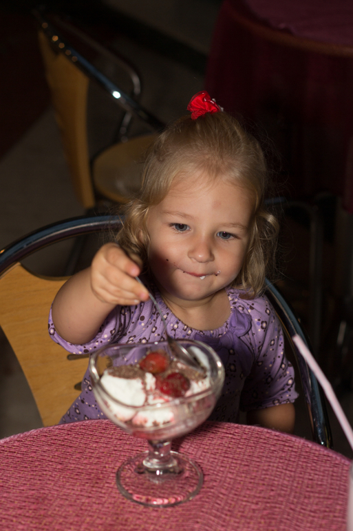 Режим у нас не сбивался почти, за исключением чуть позднего обеда, но у меня было впечатление, что она все время уставшая, сначала еще у нее был энтузиазм и всё было любопытно,потом стало её уже никуда калачом не заманить, даже в свой любимый бассейн, за который она раньше душу продавала!
