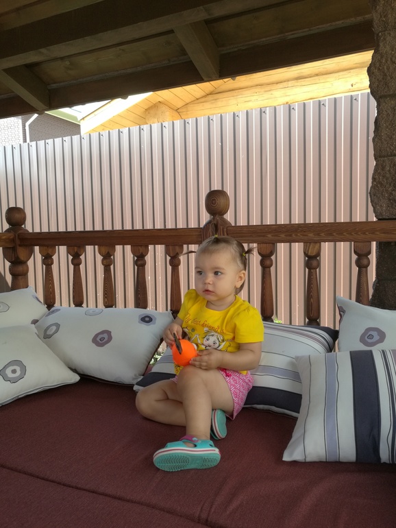 Растем и развиваемсяЛерочка моя средненькая доченька..какой большой мне кажется по сравнению с младшей. Что умеем к тому что умели Собирать пирамиду беспорядочно , мозайку( только втыкать) стоять на голове, подпрыгивать, выполняет все просьбы принести , выкинуть в мусорку. Отнести в стиралку.Любимая книга энциклопедия животный мир. Мультики не смотрит..а вот передачи про животных с удовольствием..но не долго..вообще на одном месте не задерживается..шкодная такая..старшую гоняеет щипает, бьет. Та мне жалуется...ей 12 лет...младшую целует...гладит..катает в коляске..но если она у меня на руках она тоже может проситься. С горшком все было хорошо..сейчас..видимо период какой то..дома на горшок через раз..больше в унитаз...и конечно может надудолить в штаны при этом показывает что пипи..но до унитаза не добигаем..не хочет в горшок и все тут..а на улице постоянно просится ....все отлично...а дома..ее горшок что ли смущать стал..не могу понять...Соска! Она у нас никогда не была на все случаи жизни..только в сон. С дневного отучили месяц назад...у нас 2 соски одна в коляске..другая в кроватке. Так вот спит днем она у нас в коляске на улице с рождения. Хорошо свой двор...эту соску я подрезала..и она ее выплевывала...в итоге перестала просить..а вот ночную..мы не знали как..и так вчера с дочей договорились что соску отдаем маленькой ляле..она ее сама отдала..вечером уснула нормально..а ночью истерика..я ее спакаивать..говорить..мы же отдали..теперь ляля ее сосет..она вроде согласилась..уснула..сегодня вечером уснула опять без нее..незнаю что нас ждет ночью. Но с ней уже можно договариваться. Иногда меня даже пугает ее понимаемость..например держит куклу верх ногами..я говорю зачем куклу так держишь..переверни..она берет переворачивает...или например говорю ой какая ты лохматая..она бежит в ванну за расческой...а вообще она бандитка...шкодничает..на раз. Все что неправильно лежит...тут же оказывается у нее.