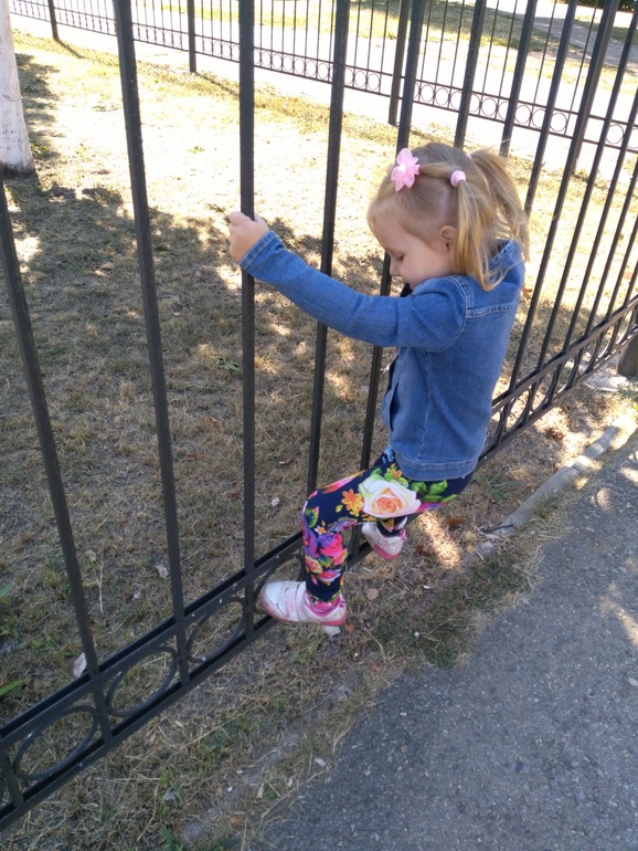 Пытаюсь уложить спать с 15 до 17, может и заснуть и проспать до 19, но это уже поздно. Вечером отбой в 22-00. С вечерним сном редко проблемы, засыпает в темноте в кроватке своей. Держу её за руку.