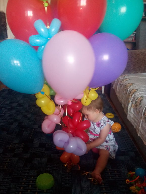 Покупала Ноев ковчег (ребенок в восторге) и связку воздушных шаров (не впечатлили). Зажигала свечу в торте и дала ребенку маленький кусочек. Тортик понравился, просила еще, но я не сдалась)))