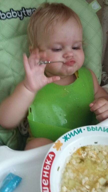Любит танцевать, свекровь говорит, что слишком неприличные танцы у нас😂 Но если играет музыка - мы танцуем и неважно где находимся😎 Вот так по царски мы учимся кушать сами: