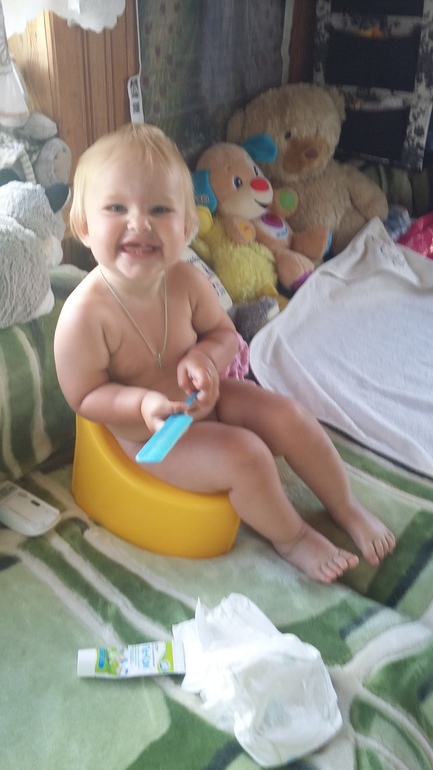 Туалетные дела у нас пока никак не движутся. Знает куда надо писить, ведет к горшку, показывает пальцем...но писеет в него только если подловим. Но этим занимаются чаще бабушки, которые ох ох ох...какая взрослая,а все в подгузнике😬😤