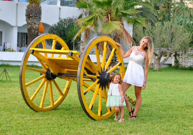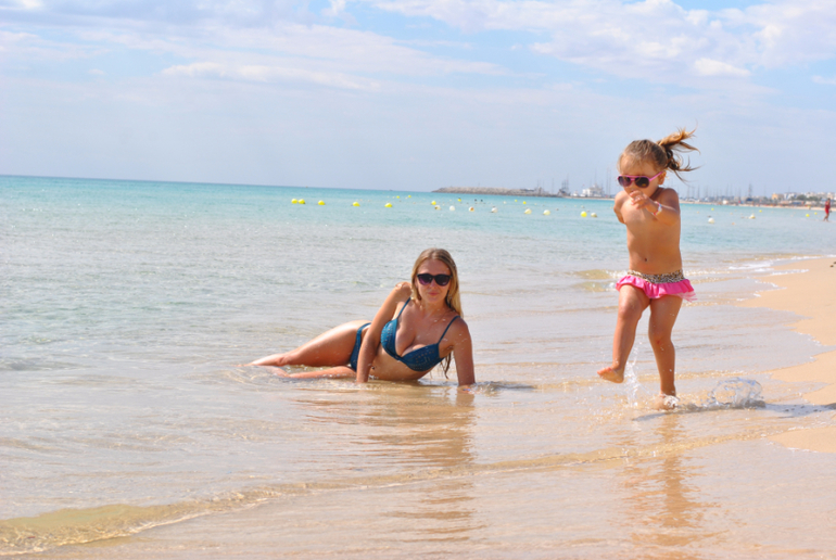 Путешествия с малышом17 го сентября мы с Кирочкой (2 г и 10 мес) и нашими друзьями улетели в чудесный теплый Тунис. Это было третье путешествие Кирочки, в 9 месяцев летали на Крит, в 1г и 9т мес летали в Сочи. Это было первое путешествие без нашего папы, он к сожалению не смог с нами полететь( Теперь у Киру уже было свое место в самолете поэтому полет прошел отлично, правда мы надеялись, что Кира поспит в самолете т.к.вылет был в 6 утра, но нет( Но вела себя хорошо, играла, веселилась) На обратном пути она 90% полета проспала - так что полет был просто идеальный) В самом Тунисе нам безумно понравилось! Ну сама страна так себе, а вот отель и море....а главное пляжи - песок как мука!! Климат идеальный для нас, плюс уже не было изнуряющей жары, комфортная температура 26-27 градусов, иногда набегали тучки и было пасмурно, два раза даже шел дождик, но это ни сколько не испортило нам шикарного отдыха. Вечерами была детская программа с танцами и Кира всегда в первых рядах танцевать и на сцену) Потом были интересные шоу и она с интересом на все смотрела) ну в общем не буду много писать, лучше покажу фото, они скажут все за себя) Скажу одно, этот отдых навсегда в моем сердце и я обязательно еще вернусь на эти бескрайние пляжи!