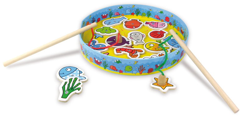 10. Магнитная рыбалка Vilac. Выглядит вот так:Чем мне понравился этот набор? Это дерево (правда рисунок нанесен на бумагу), тут большое разнообразие морской фауны и даже немного флоры, крупные фигурки - проглотить не удастся, две удочки- рыбачим вместе с сыном, коробка для хранения, которая по совместительству выполняет роль водоема