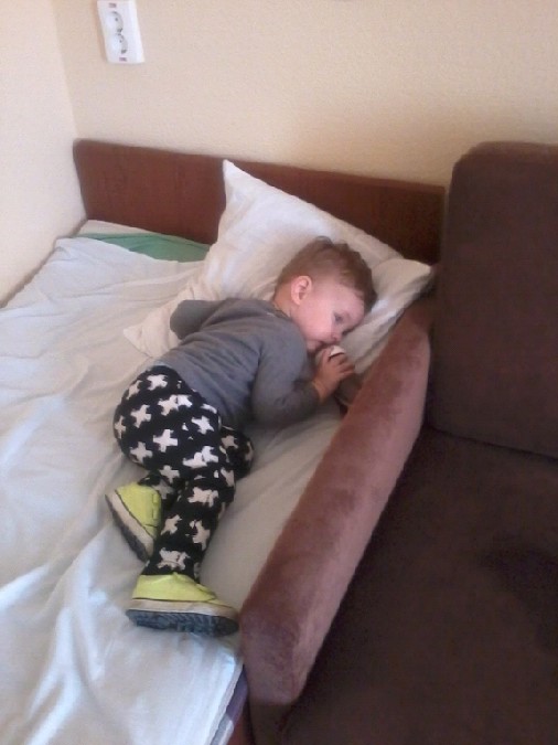 Раз в год моя мама получает путёвку в санаторий. В этот раз вариант был не лучший- Геленджик " Солнечная", но все же ехать решено было с папой моим и Платошей. Собирала я ребёнка, как на год. Три чемодана и коляска. Хорошо , что ехали на машине. Папа мой, когда увидел, чуть в обморок не упал. Ну ничего... Номер у них был с видом на море, в номере предполагались 2 кровати полуторки и кресло кровать. Платон отжал одну из кроватей и никого туда уже не пускал. За месяц до поездки, если не больше, мы перешли на 1 сон. Но там они вернулись к 2 дневным снам, очень Платон уставал и с 1 сном не выдерживал. Утром просыпались, бабушку не будили и шли с дедом на площадку, потом к ним подтягивалась бабушка, шли на завтрак и возвращались в номер, Платон быстро раздевался, лез на кровать, брал бутылку с чаем и засыпал. Есть фото, где он даже не захотел разуваться, полез спать. Но мне , честно говоря, 2 сна и удобней. У нас развивайки и удобно когда после завтрака перед занятием Платон хотя бы часик спит, тогда ему все интересно и весело .