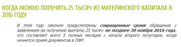 25.000 рублей из материнского капитала можно получить до 30.11.16 !!!!! Многие не знают