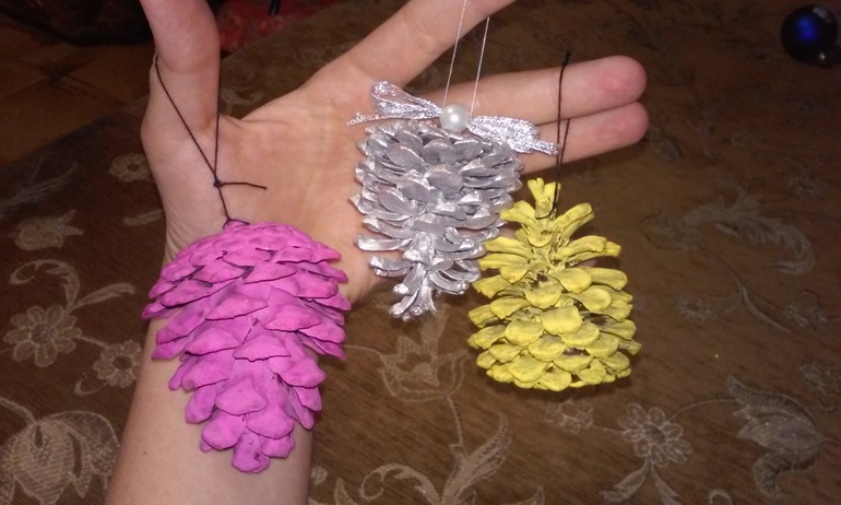 У нас шилопоп еще тот. Живую елку не люблю от нее много мусора, она не дешевая, да и страшненькая. А искуственную можно собирать всем вместе. В 10 мес ставила елку с обычными игрушками, но простояла она ровно 4 минуты. В 1,10 решила сделать календарь с заданиями на декабрь и первым из заданий было собрать шишки, следующие задание шишки покрасить. Естественно что ребенок покрасил далеко не все шишки. Поэтому купила краску в балончике и красил шишки муж, а я приклеила к верхушке бусинку и сделала бантик с петелькой. Этими шишками и наряжали елку, которую все вместе собрали. Ребенку очень понравилось.
