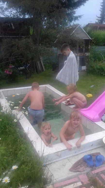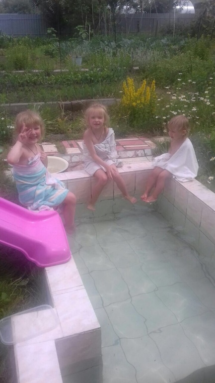 Растем и развиваемсяПока жарко живем на даче у родителей! То одни, то мама, папа приезжают! Целыми днями купаются детки! Так здорово когда есть куда уехать летом!